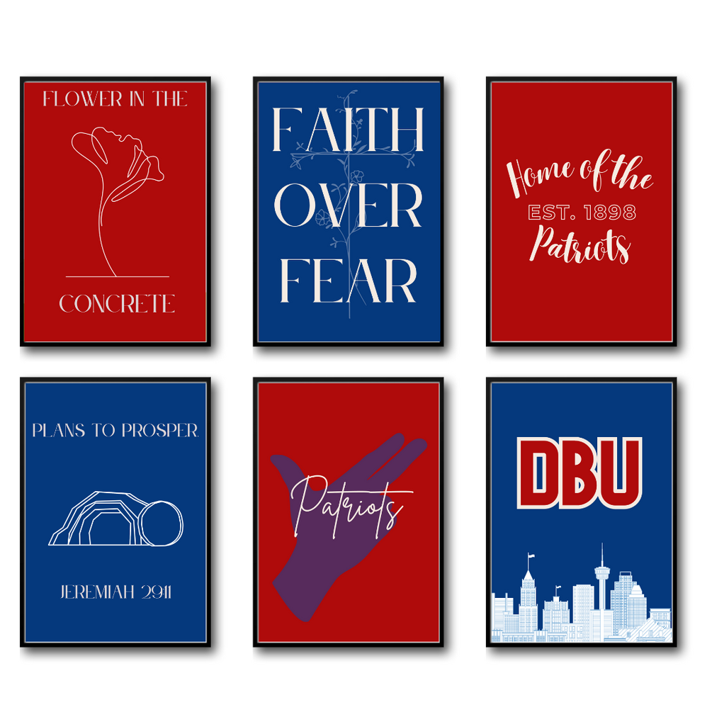 Celebrate the heart and soul of Dallas Baptist University (DBU) with our exclusive 11x17 high-quality digital posters! Inspired by DBU’s traditions, faith-centered mission, and iconic campus landmarks, these designs are perfect for students, alumni, and Patriots fans who want to showcase their pride in style.