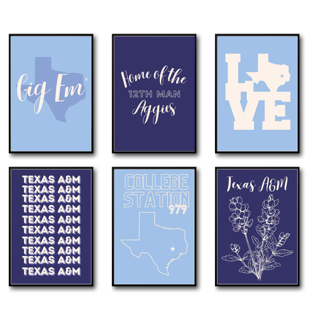 Texas A&M posters Light+ Dark Blues combo (6 Pack)